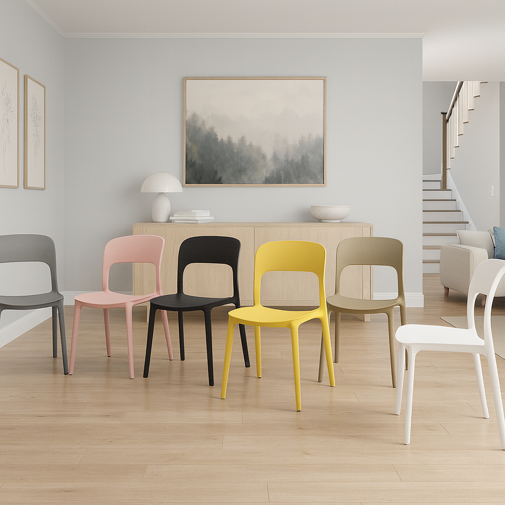 The chairs are made of high-quality plastic and in a single block, therefore they are light and at the same time resistant; they can be easily moved and stacked together and therefore are an excellent space-saving solution, ideal for those looking for a functional seating without sacrificing design.