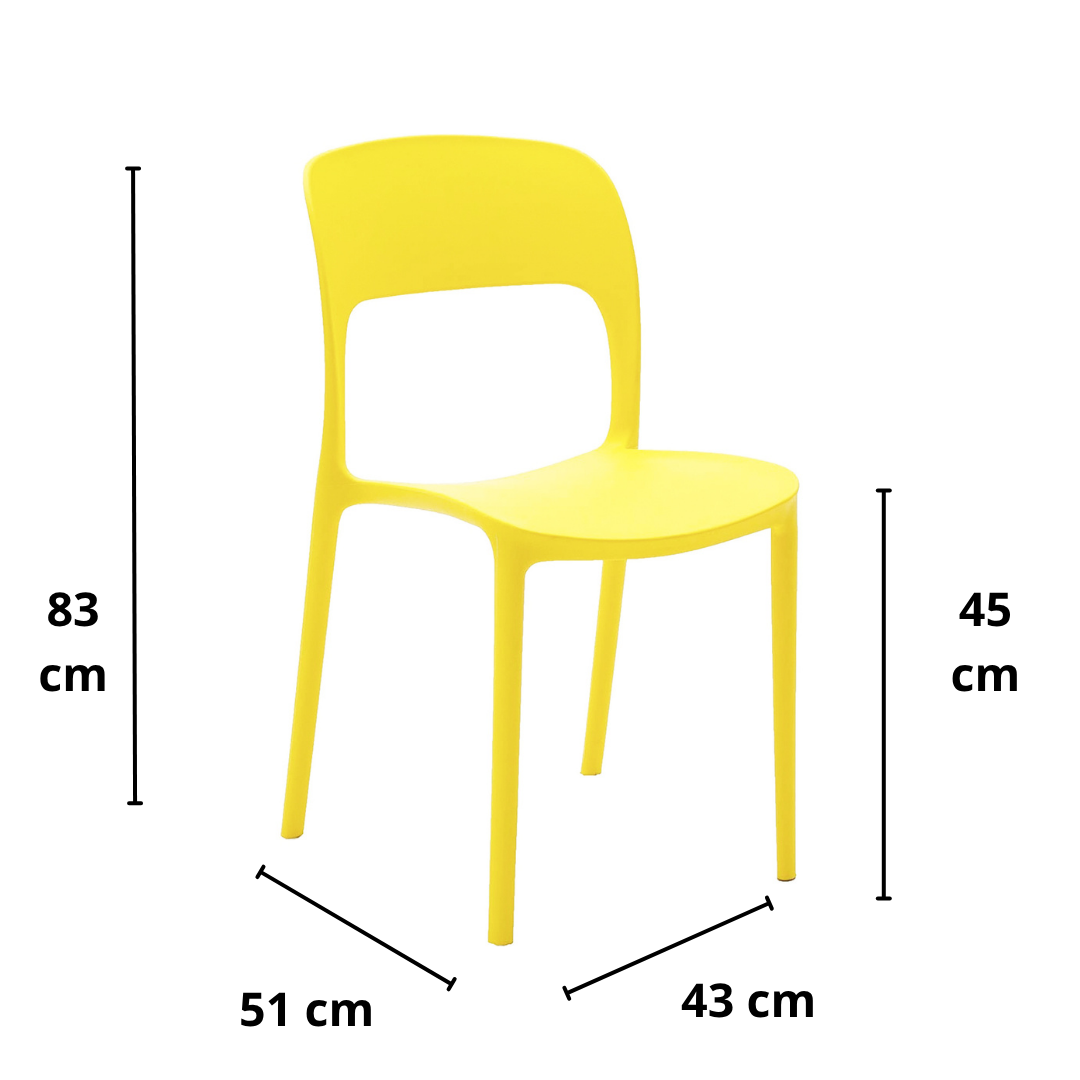 Set of 4 SOUTH BEACH chairs in yellow polypropylene, perfect for furnishing in a new age and contemporary style. Their versatility makes them ideal to be placed in any environment, both indoors and outdoors, such as kitchen, living room, terrace, garden but also in bars and restaurants.