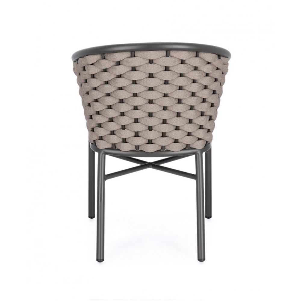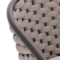 La structure en aluminium peint anthracite est associée à une subtile et particulière tissage en corde beige, qui enveloppe le dossier et les accoudoirs créant un effet visuel accueillant.