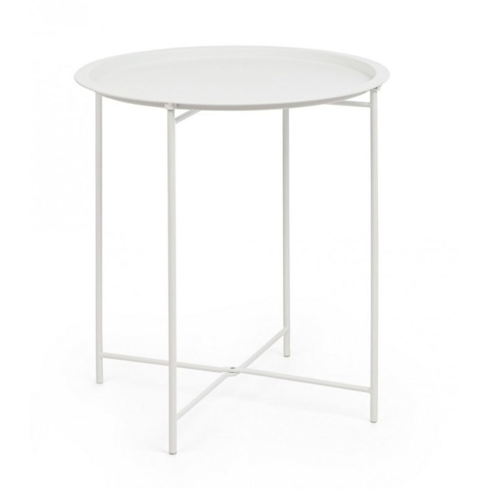 Leur design minimaliste se caractérise par un plateau rond avec un rebord légèrement surélevé, servant de plateau amovible, et une structure légère avec des jambes fines croisées, assurant stabilité. La finition mate en couleur blanche apporte luminosité et raffinement, les rendant idéaux pour les terrasses, jardins et balcons. Grâce aux jambes pliables, ils sont faciles à ranger et prennent peu de place lorsqu’ils ne sont pas utilisés.