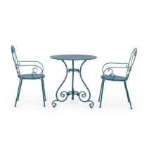 La structure est en acier traité et peint en poudre de couleur bleu, idéale pour résister aux intempéries, tandis que la finition mate lui donne un aspect sophistiqué.