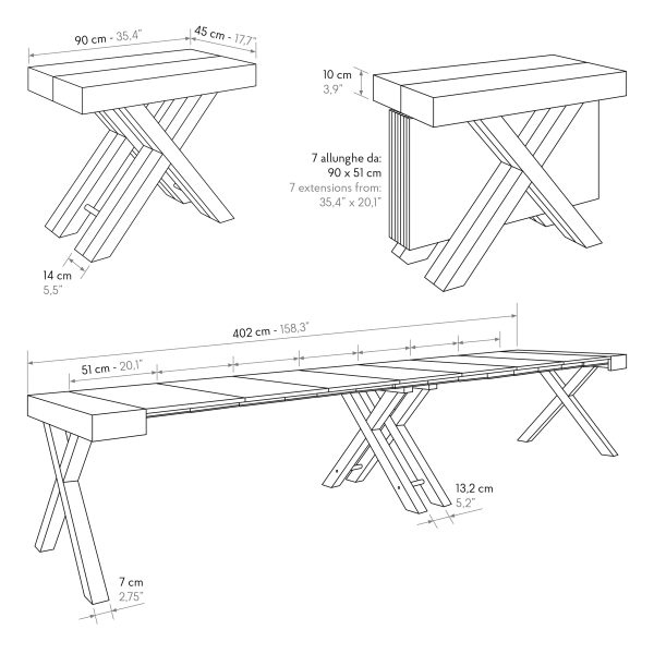 • Allungabile fino a 402×90 cm;