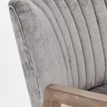 La seduta e lo schienale, rivestiti in morbido tessuto effetto velluto di colore grigio, aggiungono un tocco di calore e accoglienza ai tuoi spazi. Le cuciture verticali sullo schienale curvo donano un dettaglio raffinato e caratteristico.