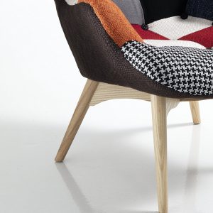 Poltroncina in legno di faggio massello di alta qualità completamente imbottita in tessuto patchwork con bottoni sullo schienale, il suo stile impareggiabile ed innovativo è ideale per arredare gli interni di casa ed ufficio, particolarmente indicata per la lettura.