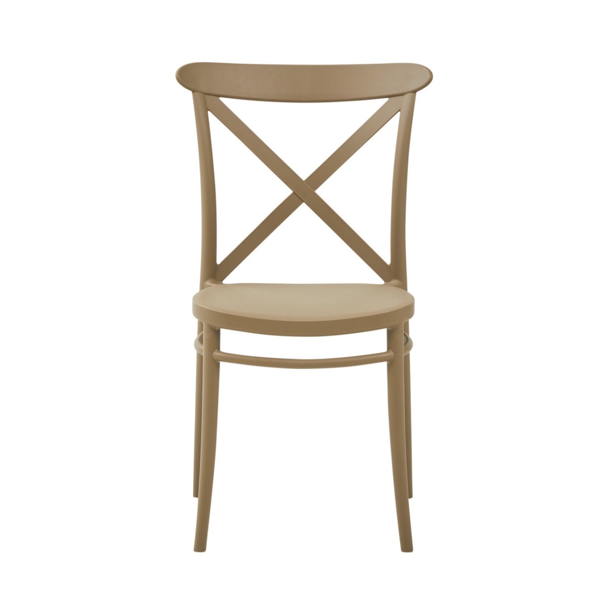 L’intera struttura è realizzata in polipropilene rinforzato con fibra di vetro e lo schienale è caratterizzato da un’elegante struttura a “X” che garantisce un ottimo supporto lombare.
