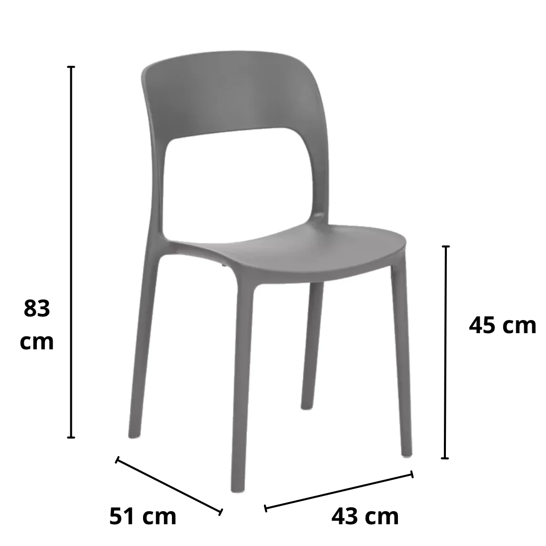 Set di 4 sedie SOUTH BEACH in polipropilene grigio, aggiunge un tocco di leggerezza e contemporaneità. Il suo design moderno e originale si adatta in modo perfetto a qualsiasi ambiente, in una sala da pranzo con toni neutri o in uno spazio esterno.