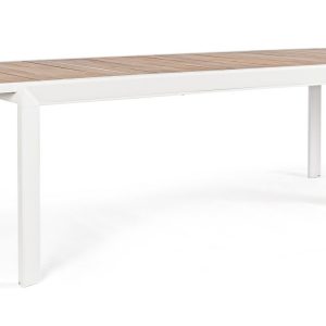 Tavolo BELMAR si adatta ad ogni occasione grazie al suo design moderno e versatile. Struttura in alluminio con piedini regolabili e piano allungabile verniciato effetto legno.