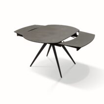 Tavolo girevole allungabile LAVEZZI con piano in vetroceramica grigio effetto grafite spessore 10 mm e base in acciaio antracite.