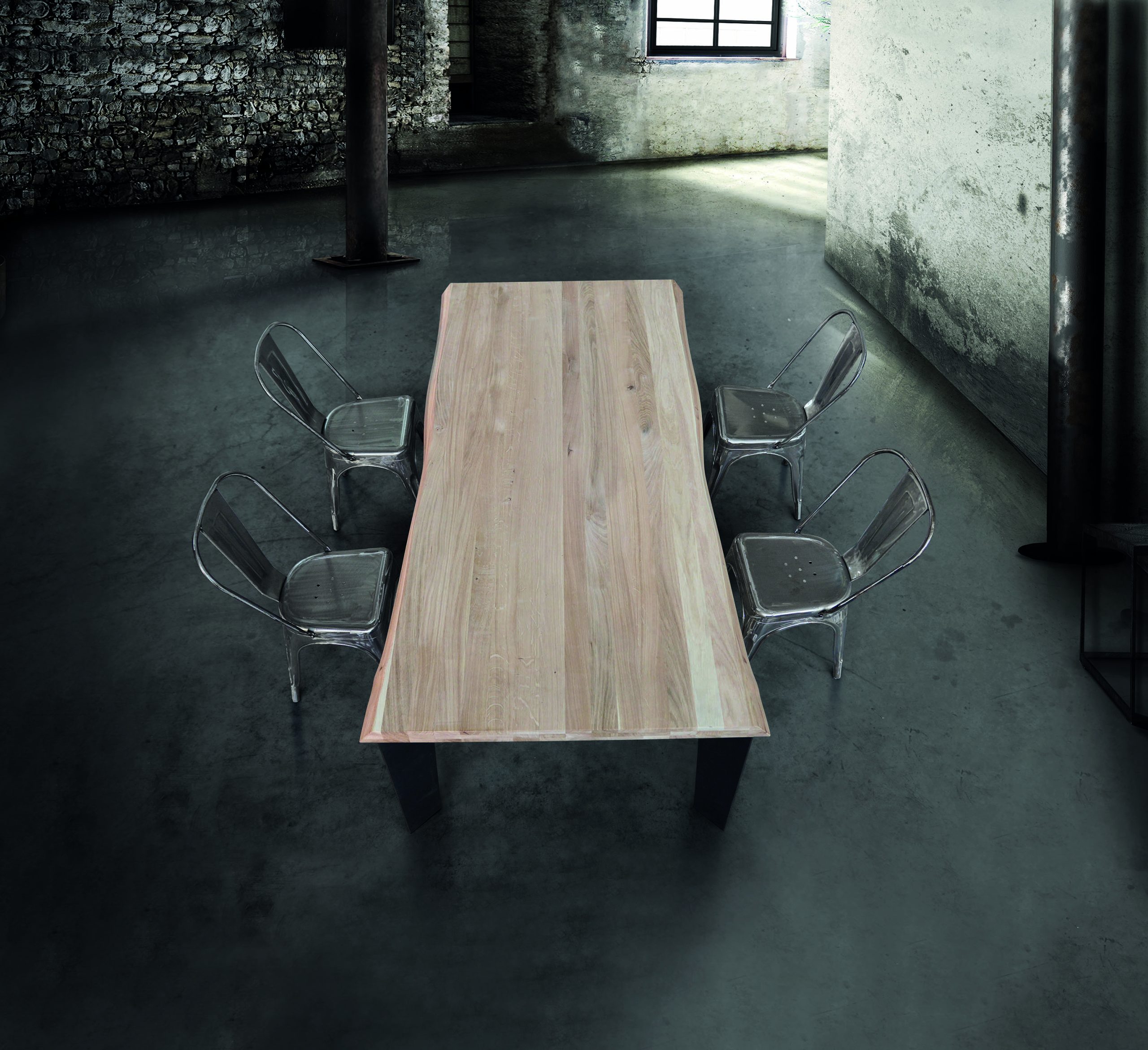 Tavolo in legno massello con piano di spessore 4 cm dallo stile moderno, adatto per ogni ambiente domestico come soggiorni e sale da pranzo, molto indicato anche per sale riunioni.